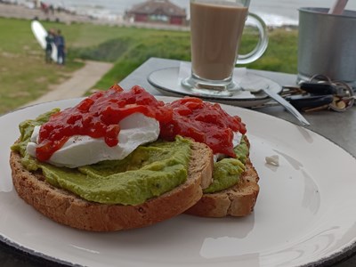 Cychwynnodd diwrnod ar lan y môr yn Rest Bay, Porthcawl, gyda brecwast yn edrych dros y traeth (lle roedd syrffwyr yn cael hwyl). Mae Rest Bay ei hun yn faes chwarae ar gyfer syrffio barcud, syrffio a padlfyrddio, ac mae yna hefyd bromenâd hardd yn rhedeg tuag at Borthcawl, lle gallwch feicio neu gerdded i lawr i'r traethau a'r cildraethau sy'n cofleidio'r arfordir creigiog.