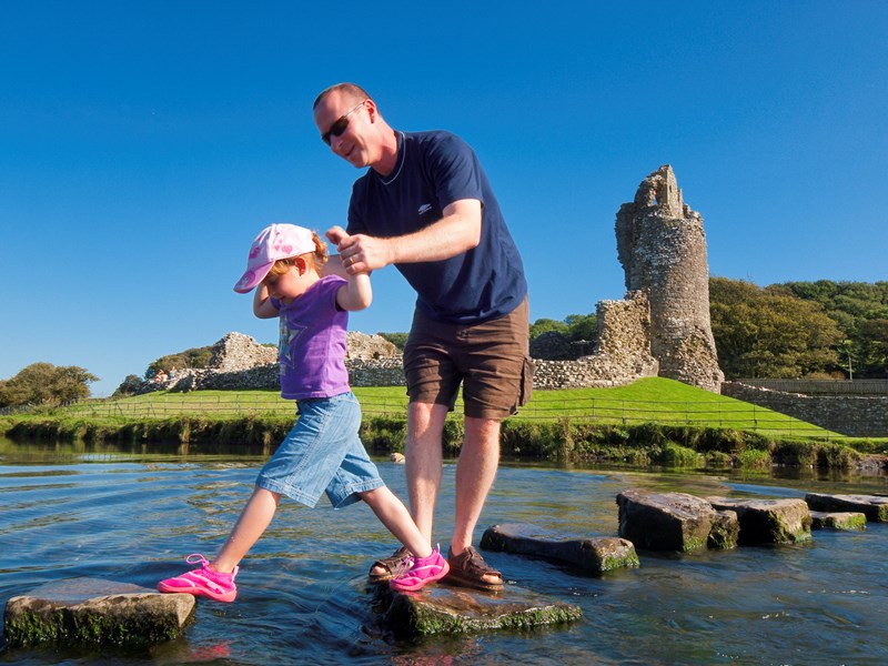 Along the route enjoy the thatched cottages and meadows of Merthyr Mawr village before crossing the iconic stepping stones to the dramatic ruins of Ogmore Castle.
